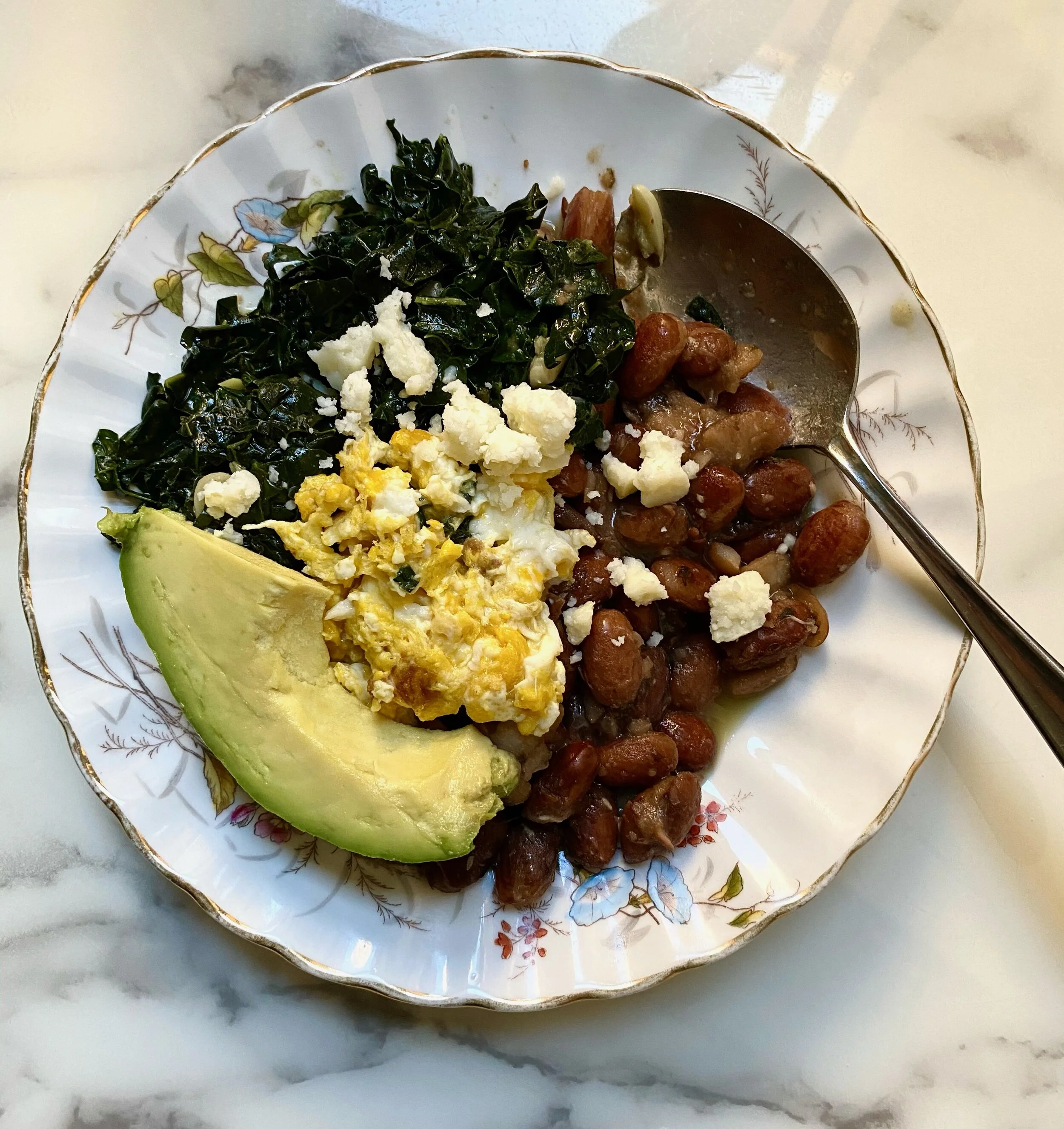 These are some of the easy dinners that I’ve made with the items that I purchase. To help form my mealtime framework, I always have a simply dressed salad alongside a protein, a starch (rice, pasta, potato, or grain), and an additional vegetable. My go-to dressing is dijon mustard, white wine vinegar, olive oil, salt, and pepper. The vegetables are usually simple to prepare and range from roasted potatoes, sautéd green beans, garlic broccoli, or roasted cauliflower. For protein, we lean on beans and grains, tofu, seafood, or organic poultry. Here are some of the quick dinners we’ve thrown together with the ingredients I usually have on hand.