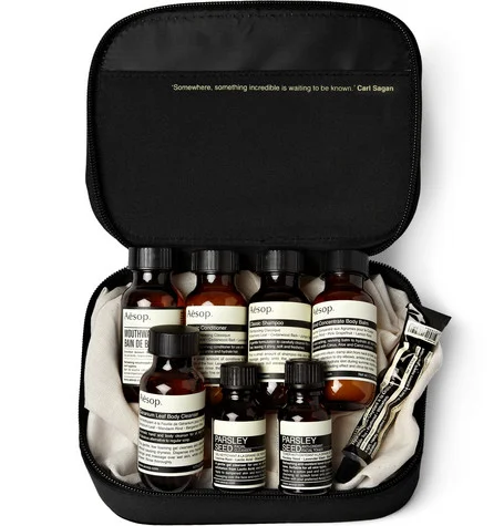 Travel ready grooming kit by Aesop available at Mr. Porter. Because every man friend deserves to be pampered too, even if his approach is low maintenance.