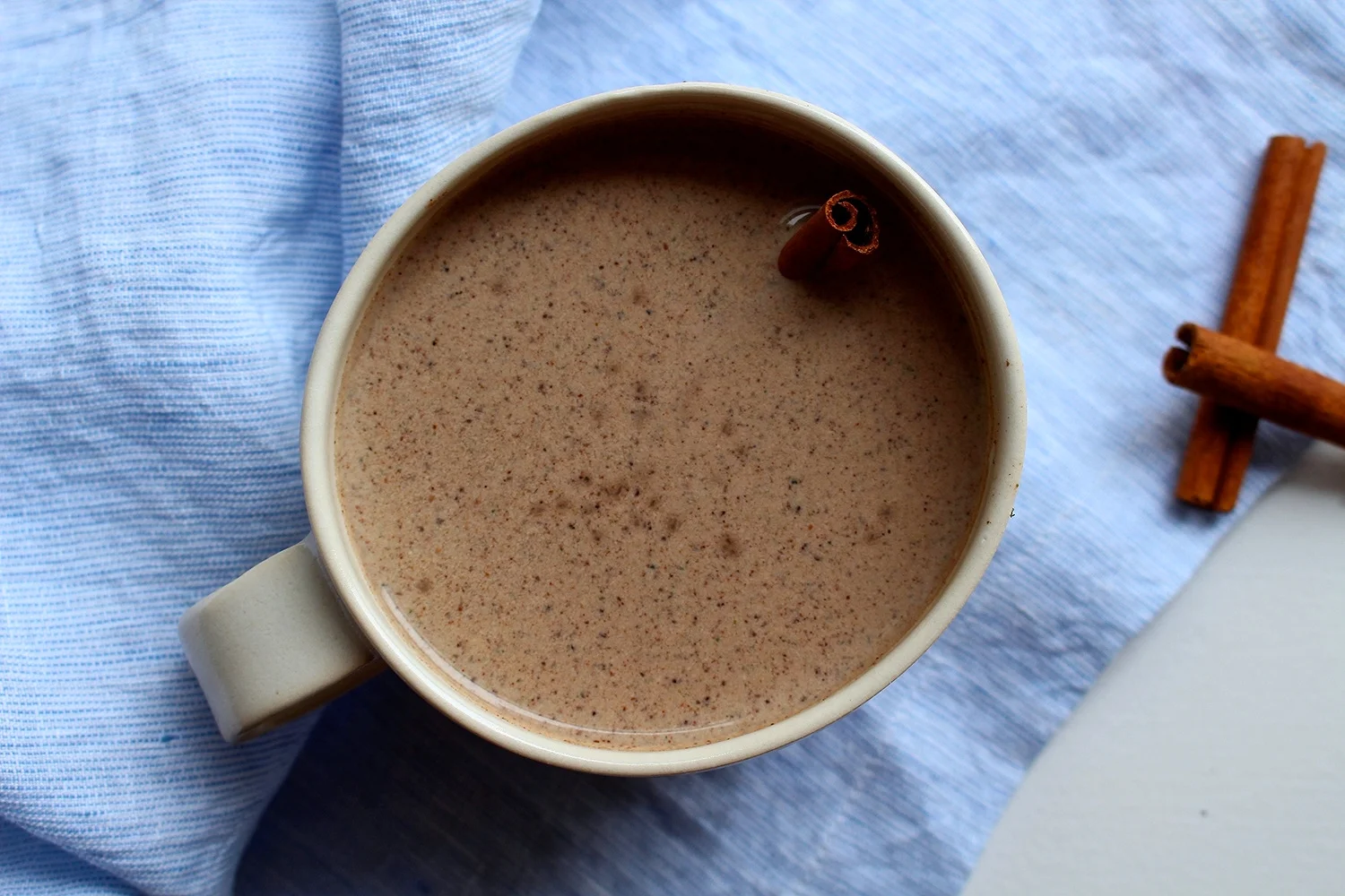 Warm water or milk in a pot over low heat. Whisk in dry ingredients. Serve immediately with a cinnamon stick.