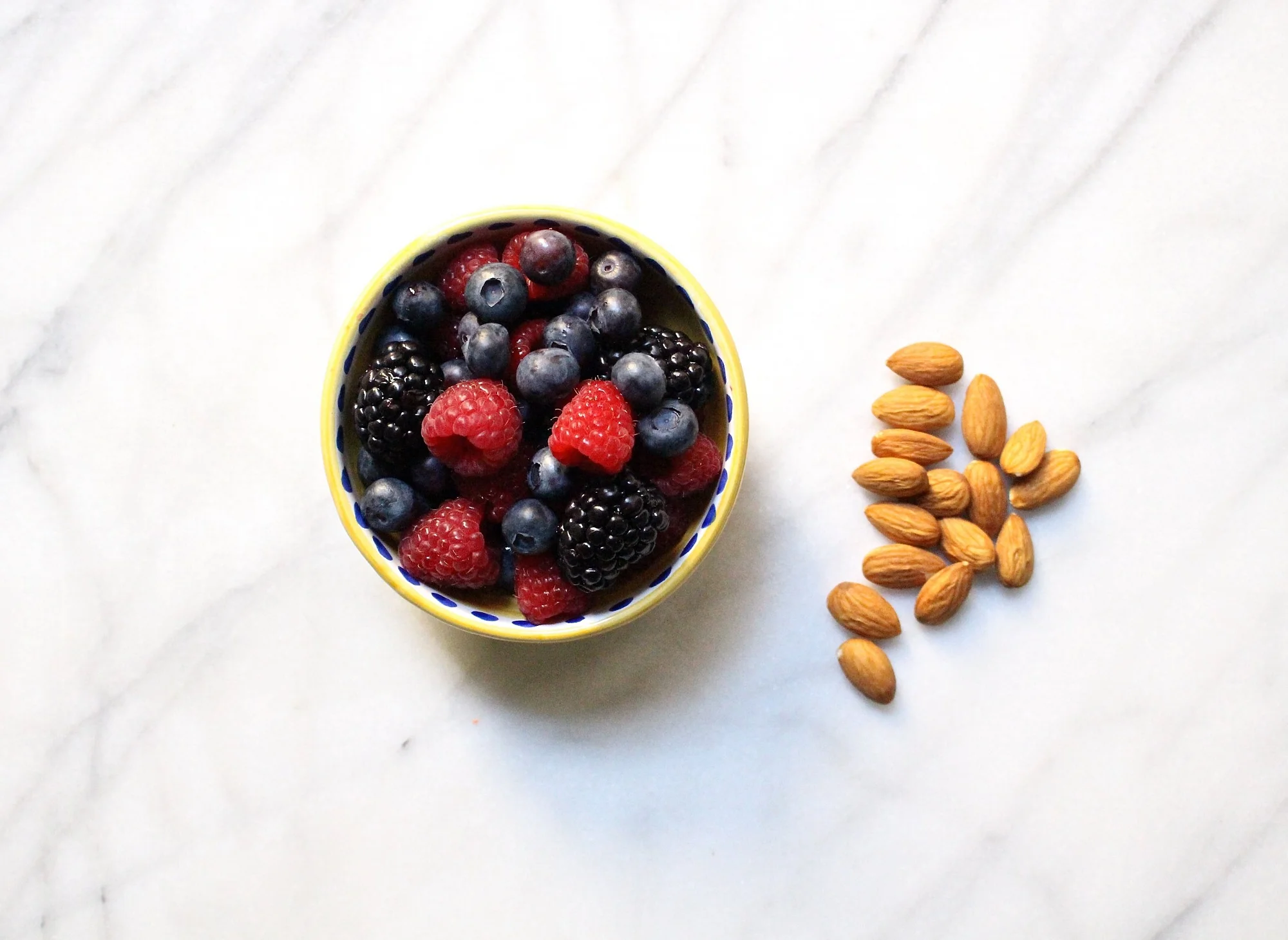 Got a sweet tooth? Nibble on 1 cup antioxidant rich berries and 10 raw almonds.