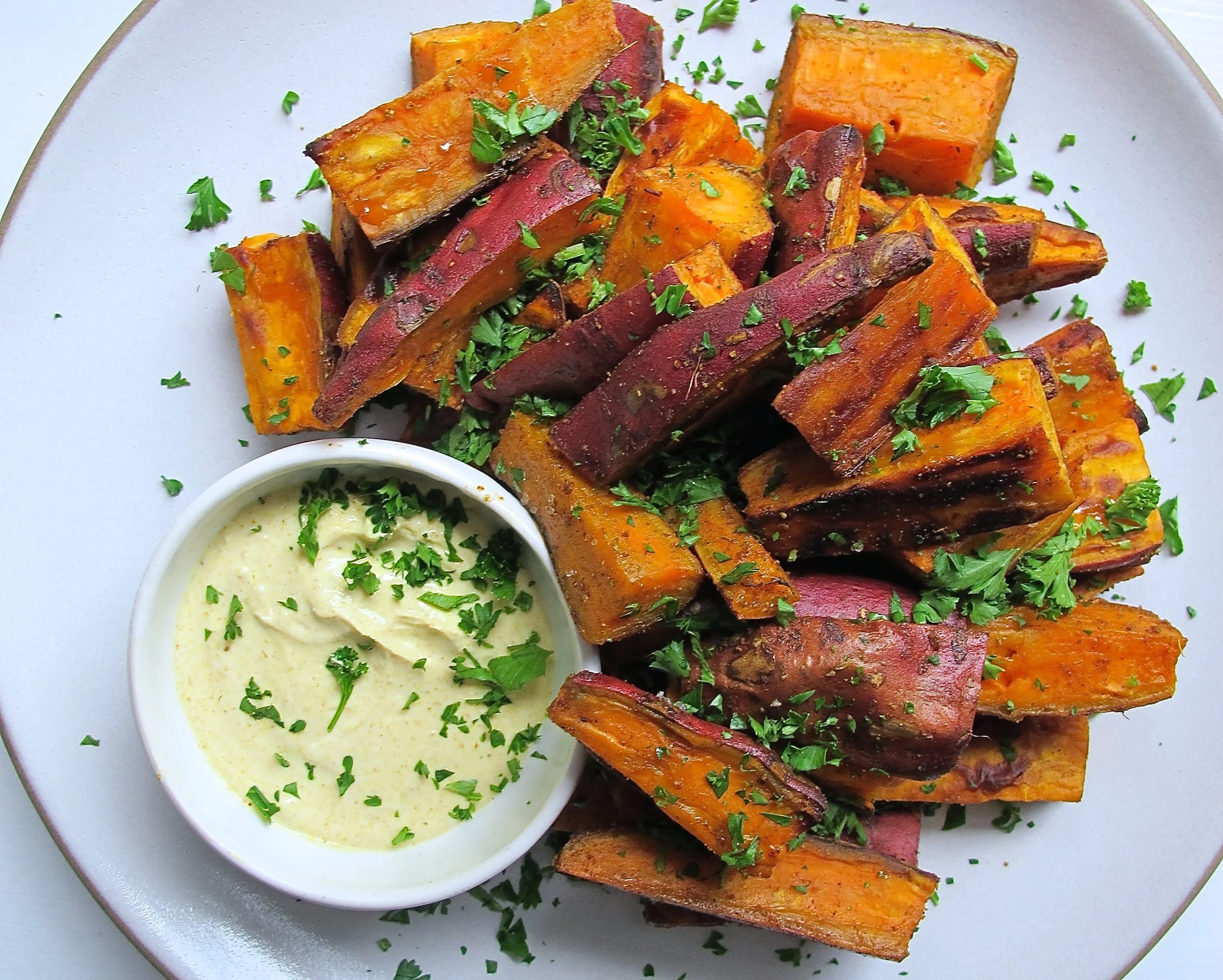 Sweet potatoes are for sure one of my favorite root vegetables. Whenever I make them, I always think to myself "why don't I make them more often?". They are truly rock star tubers since they are versatile, vibrant in color, and pack a serious nutritional punch. Sweet potatoes are bursting to the brim with Vitamin A, Vitamin C, and loads of fiber, giving you benefits for immune function, eye health, and digestion in one compact package! Here are my top 5 ways to enjoy this orange spud!