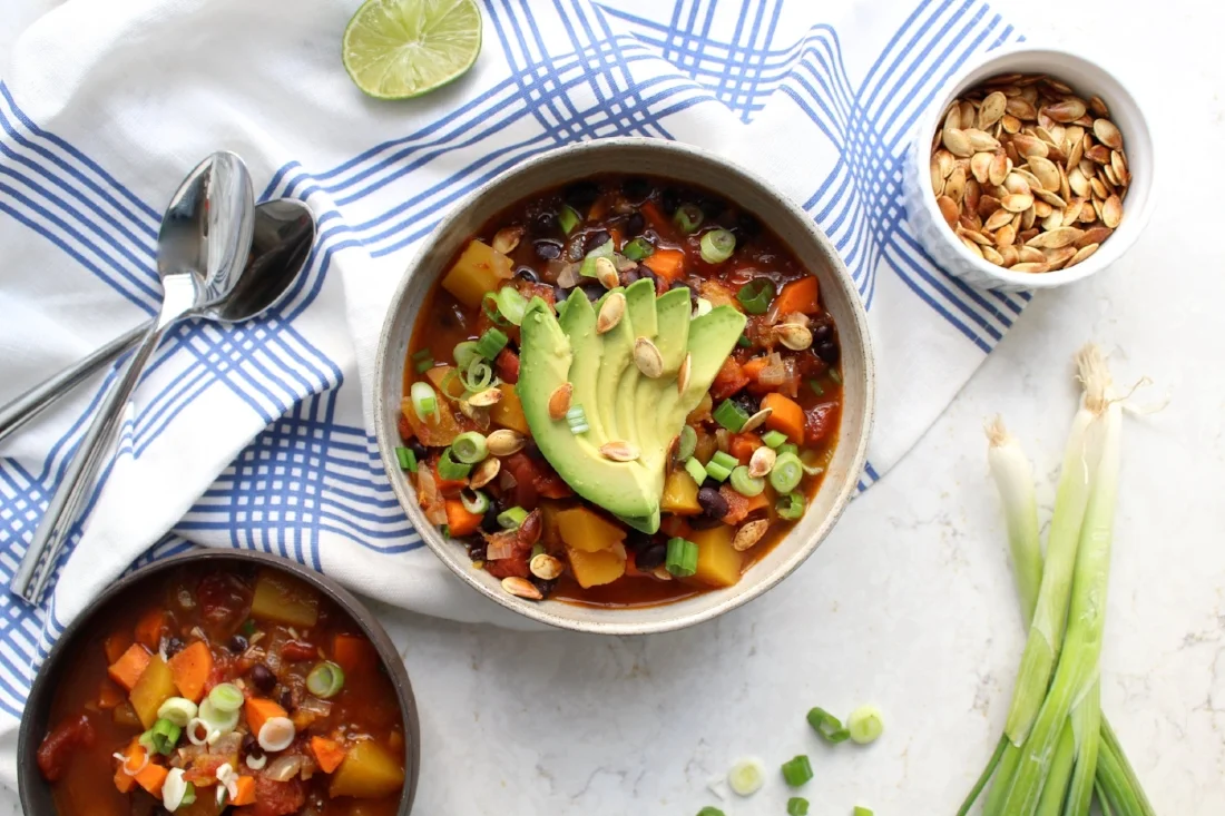 To serve the chili, ladle into bowls, and garnish with your selected toppings.