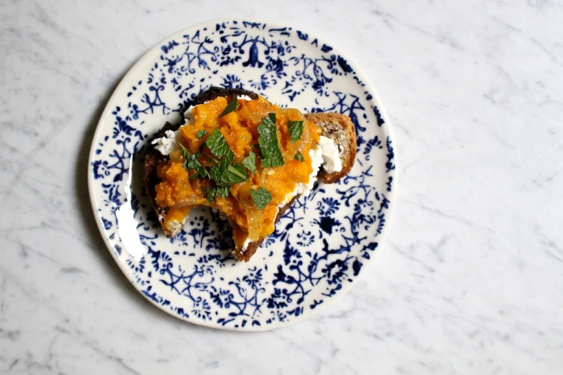 Add the cooked squash or sweet potatoes to the onion jam, stir, and gently mash. You want the mixture to be slightly chunky. Taste, add more salt or chili flakes, if needed.